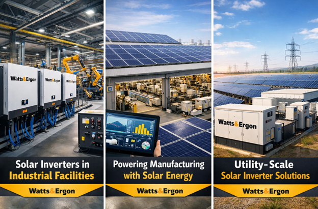 Keywords: industrial solar inverters, solar inverters for factories, Watts & Ergon solar inverters, C&I solar systems, hybrid inverters industrial, rooftop solar for manufacturing.