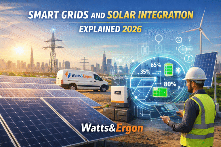 The UAE is leading the Middle East in renewable energy transformation. Smart Grids combined with solar power represent the most advanced energy revolution happening right now. In this ultimate 2026 guide, Watts & Ergon explains everything about smart grids and solar integration in simple, practical terms.
