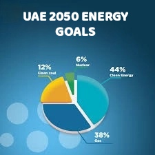 - UAE Energy Strategy 2050 targets 50% clean energy by 2050 with a 44/38/12/6 mix of clean energy, gas, clean coal and nuclear.
